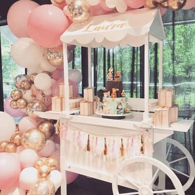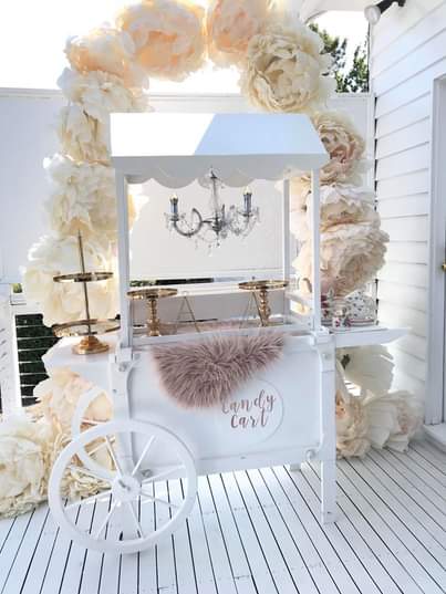 Our Crisp white Chic Candy Cart is ready for your next function. 1650 L x 1600 H